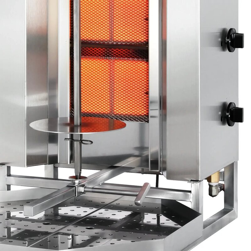 Deze Dönergrill STANDARD Gas is voorzien van gas verhitting en is een vermogen van 11,2 kW (4x 2,8kW). De behuizing is vervaardigd uit RVS.