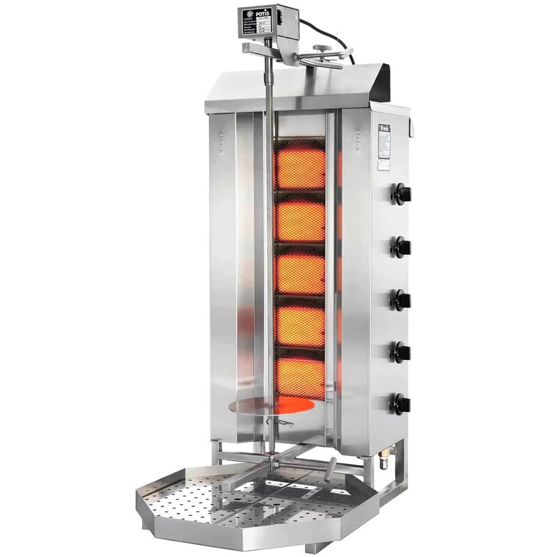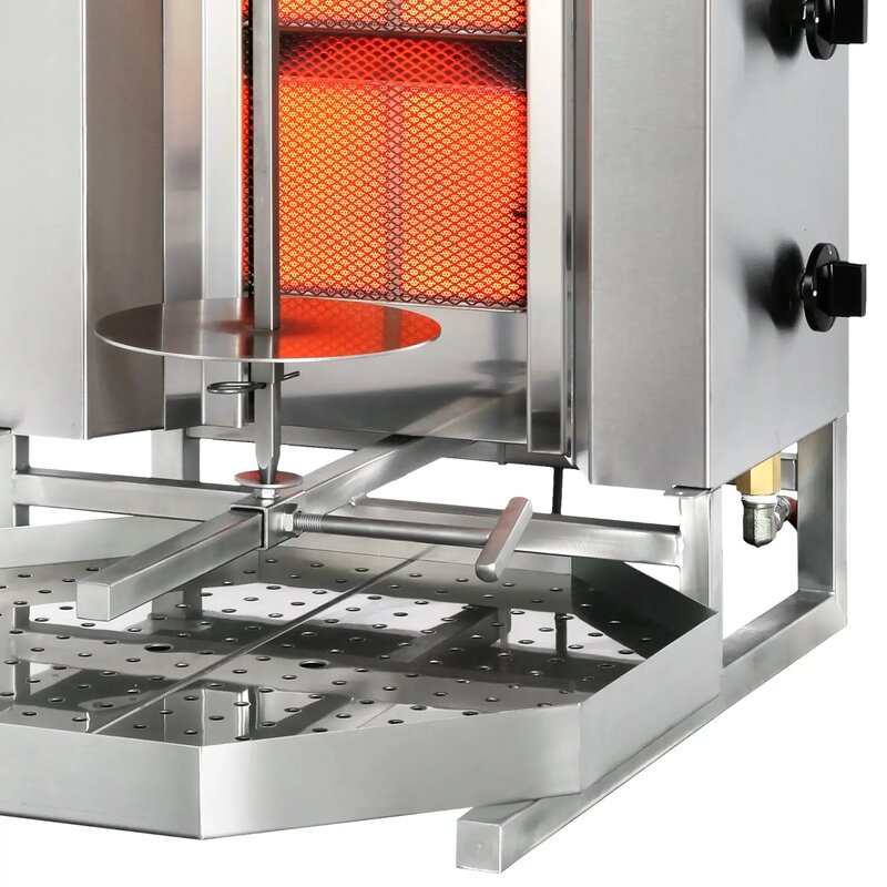 Deze Dönergrill STANDARD Gas is voorzien van gas verhitting en is een vermogen van 8,75 kW (5x 1,75 kW). De behuizing is vervaardigd uit RVS.