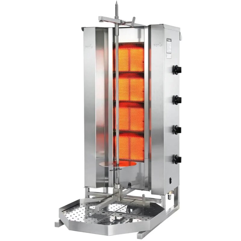 Dönergrill | Serie MU | Gas | 4 Branders | 14kw (4x 3.5kw) | Max. 70kg | Rotatiemotor Onder (achter) | 550x780x1030(h)mm