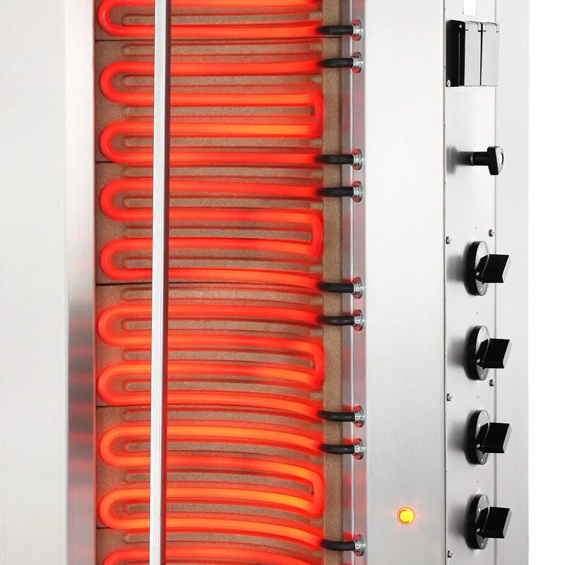 Deze Dönergrill STANDARD Elektrisch is voorzien van elektrisch (keramisch) verhitting en is een vermogen van 10,5 kW. De behuizing is vervaardigd uit RVS.
