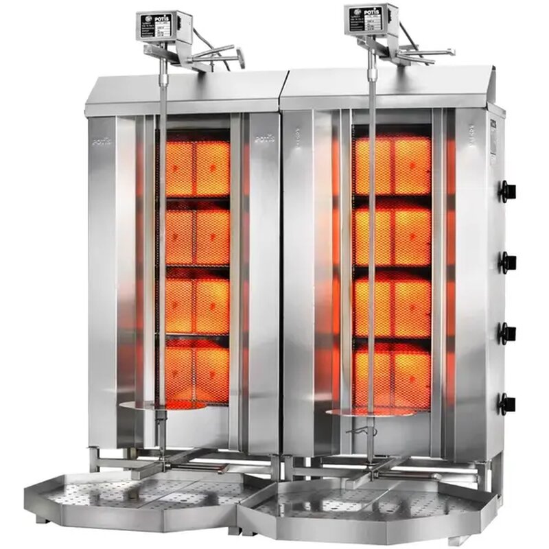 Dönergrill | Standard | Gas | 2x 4 Branders | 22.4kw (8x 2.8kw) | Max. 2x 70kg | Rotatiemotoren Boven | 1100x750x1120(h)mm