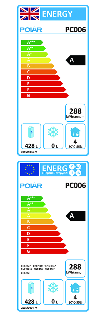 185W. Totale bruikbare capaciteit: 428Ltr. R600a