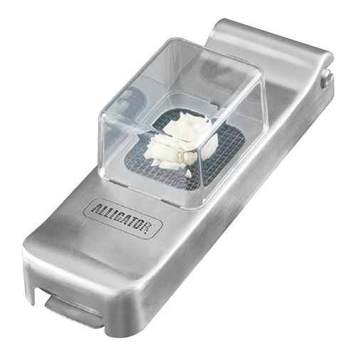 snijdt gemakkelijk uw producten in blokjes of reepjes, werkt zeer eenvoudig door de bijgesloten opvangbak, wordt compleet geleverd met het geïntegreerd drukstuk en messet van 3x3mm
