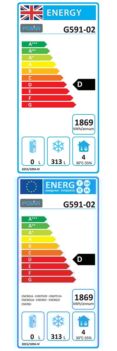 Polar G-serie 1-deurs Slimline Rvs Vriezer 440l