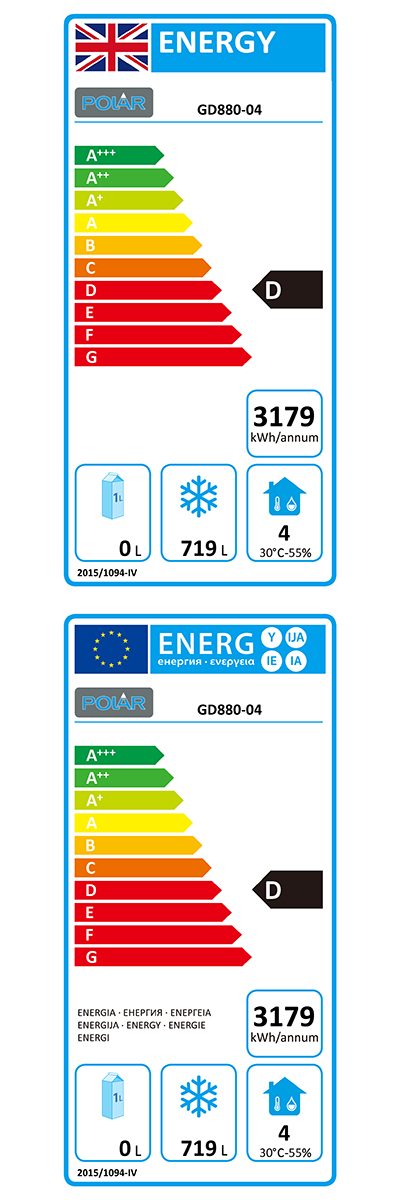 Polar G-serie Dubbele Deur Slanke Vriezer 960ltr