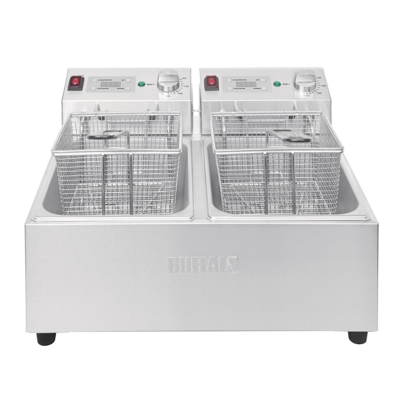 Buffalo Tweeling Tank Tweeling Mand 2x5ltr Aanrecht Friteuse Met Timers 2x2.8kw