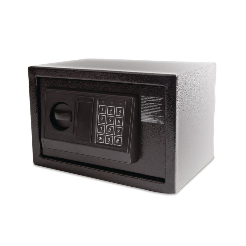 Stalen kluis om uw waardevolle eigendommen te bewaren, zoals portefeuilles en paspoorten. Geschikt voor vloer- en muurmontage en komt met 2 noodsleutels en een informatiepaneel voor gasten.