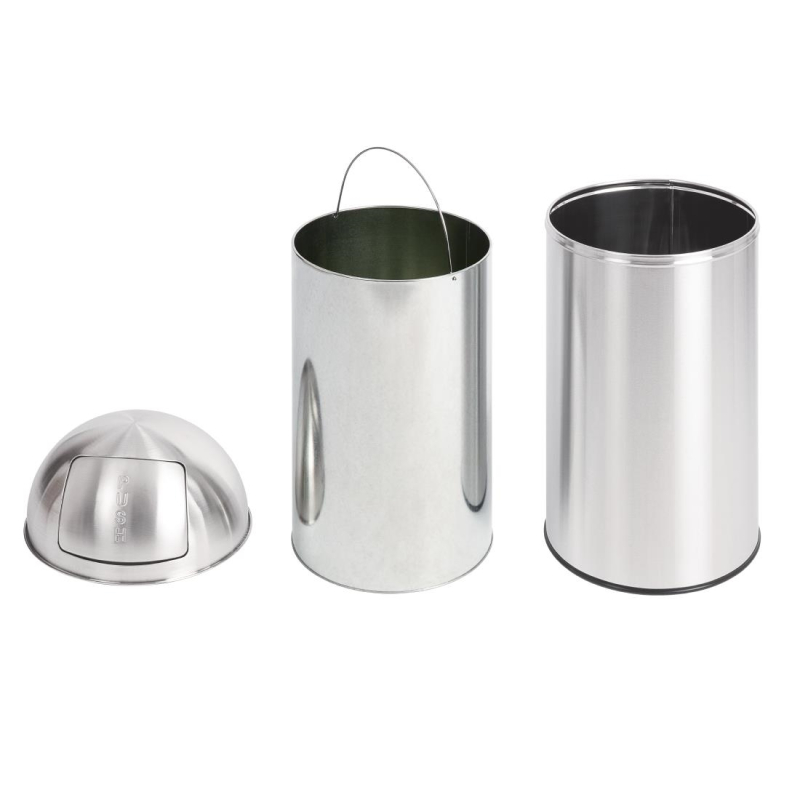 Aantrekkelijk design met zelfsluitend RVS deksel en gegalvaniseerde binnenbak met handgreep voor eenvoudige reiniging.