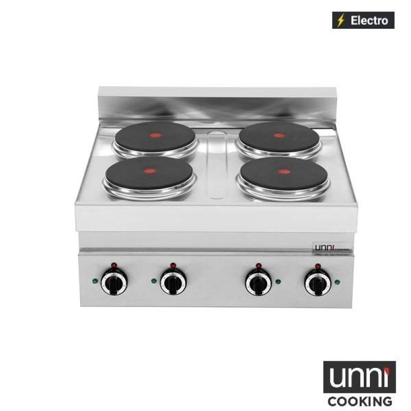 Ontdek de hoogwaardige 4-pits elektrische kookplaat, vervaardigd uit duurzaam AISI 304 roestvrij staal (8/10 dikte) met een AISI 430 coating. Met twee 22 cm gietijzeren platen, elk aangedreven door een 2,6 kW verwarmingselement, zorgt deze voor snel en efficiënt koken. Met zes temperatuurstanden per plaat en indicatorlampjes voor de bedrijfsstatus heb je volledige controle over je kookproces. Gebouwd voor duurzaamheid en betrouwbaarheid garandeert deze kookplaat een langdurige prestaties. Upgrade vandaag nog je keuken met deze premium elektrische kookplaat. Bestel nu en geniet van moeiteloos precisiekoken!