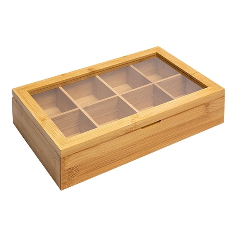 met transparante deksel en 8 compartimenten voor een overzichtelijke presentatie tot wel 64 thee zakjes, met magneetsluiting (excl. theezakjes)