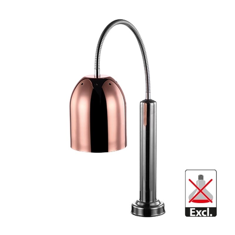 deze inbouw warmhoudlamp geeft onmiddellijk directe hitte en verschaft een doordringende warmte wat ervoor zorgt dat gerechten, soepen en snacks langer warm blijven zonder uit te drogen of te stollen. Dit model beschikt over een roestvrijstalen voet welke ingebouwd dient te worden, voorzien van schakelaar en flexibele arm waarmee de positie van de lamp eenvoudig instelbaar is
