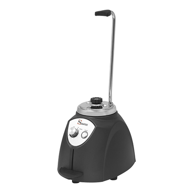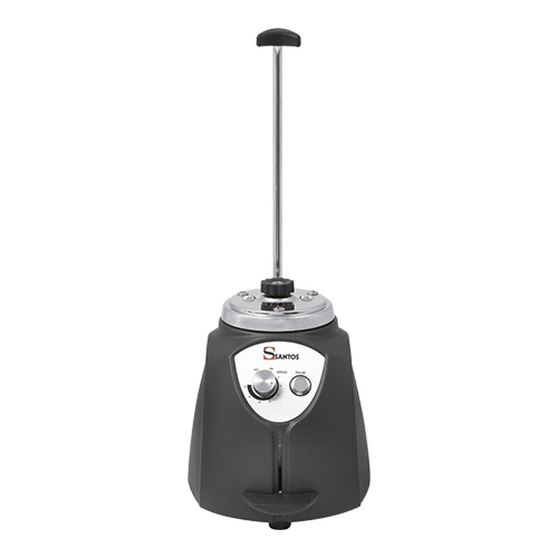 voorzien van een gepatenteerd veiligheidssysteem, d.w.z. dat door het inschakelen de beker en deksel geblokkeerd worden, de Santosafe is berekend op langdurig en intensief gebruik, traploos instelbaar d.m.v. Toerental-regelaar, met 1pk motor