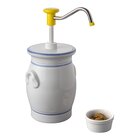 keramische pot compleet met gele drukknopdispenser, vaste dosering van 30 ml, tekstplaatje ''mosterd'' wordt los meegeleverd