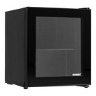 met dubbelwandige glazen deur en scheidingsrooster, uitwendig gemoffeld plaatstaal, inwendig kunststof, de deuren zijn links- of rechtsdraaiend te bevestigen, voorzien van temperatuur regeling en automatische ontdooiing en binnenverlichting
