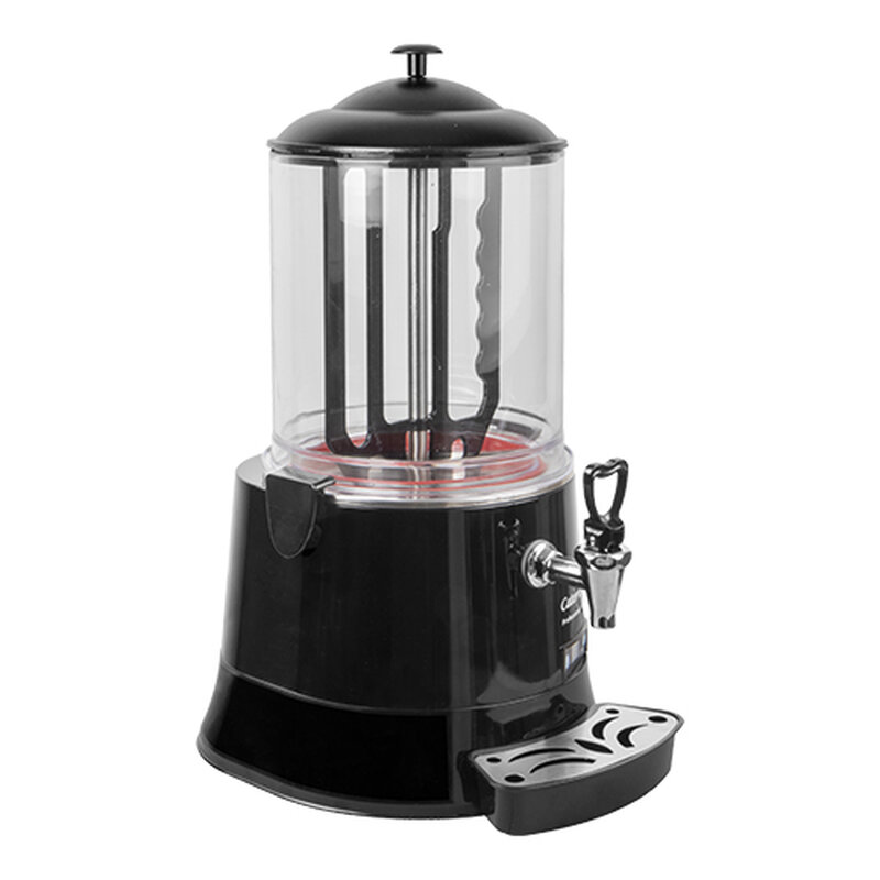 verhitting door unieke dubbele aluminium compensbodem systeem waardoor aankoeken wordt voorkomen, de dispenser is uitgerust met een transparante container, aftapkraan, roermechanisme en een lekbakje, ook geschikt voor dikkere dranken