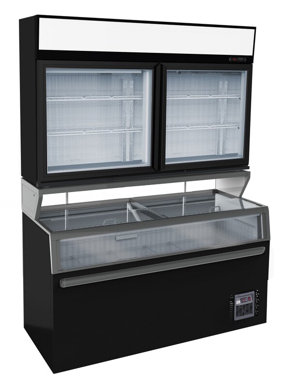 Wandvrieskast Zwart 2 Glasdeuren