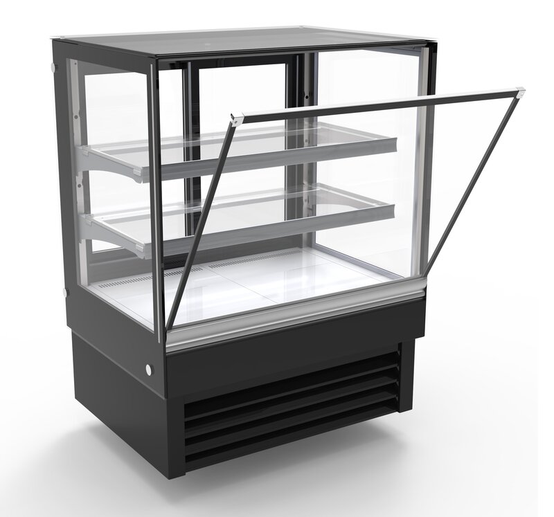 Bijzonderheden: Dubbelwandig glas, voorruit kan open en de bovenkant/toonbank is rvs