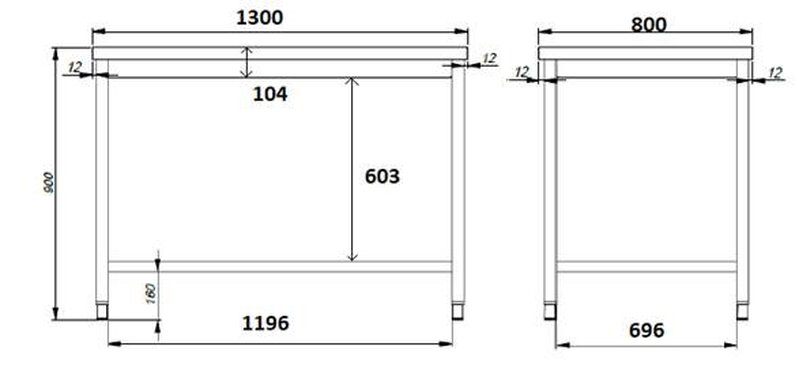 800 Werktafel Open Onderstel 1300