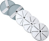 Bijzonderheden: Dikte julienne rasp: 3mm, 4.5mm, 7mm. Dikte mes 3 snijbladen: 2mm. Dikte mes 2 snijbladen: 4mm.
