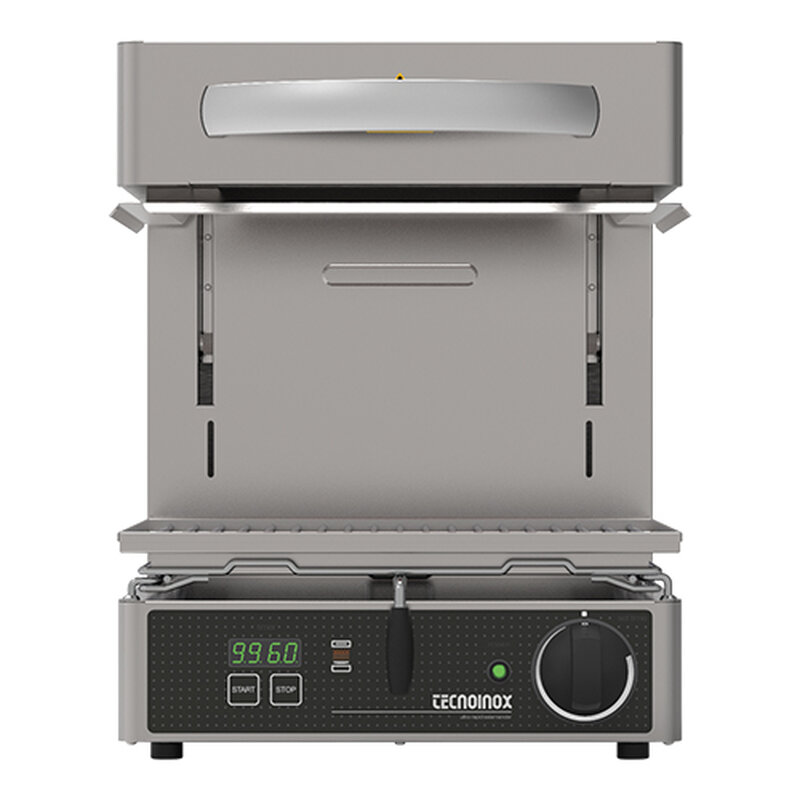 de Ceramic salamander van TecnoInox is voorzien van speciale verhittingselementen die de salamander zeer snel opwarmt (20 sec.) Samen met de keramische glasplaat, die tevens de elementen afschermen tegen vuil, zorgt deze salamander voor een gelijkmatige en unieke grillwerking. Door het lichtlopende bovenstuk is de grillhoogte variabel instelbaar, voorzien van een digitale timer (5 seconden - 99 minuten) en traploze thermostaat, met lekbak en zwaar verchroomd en uittrekbaar rooster