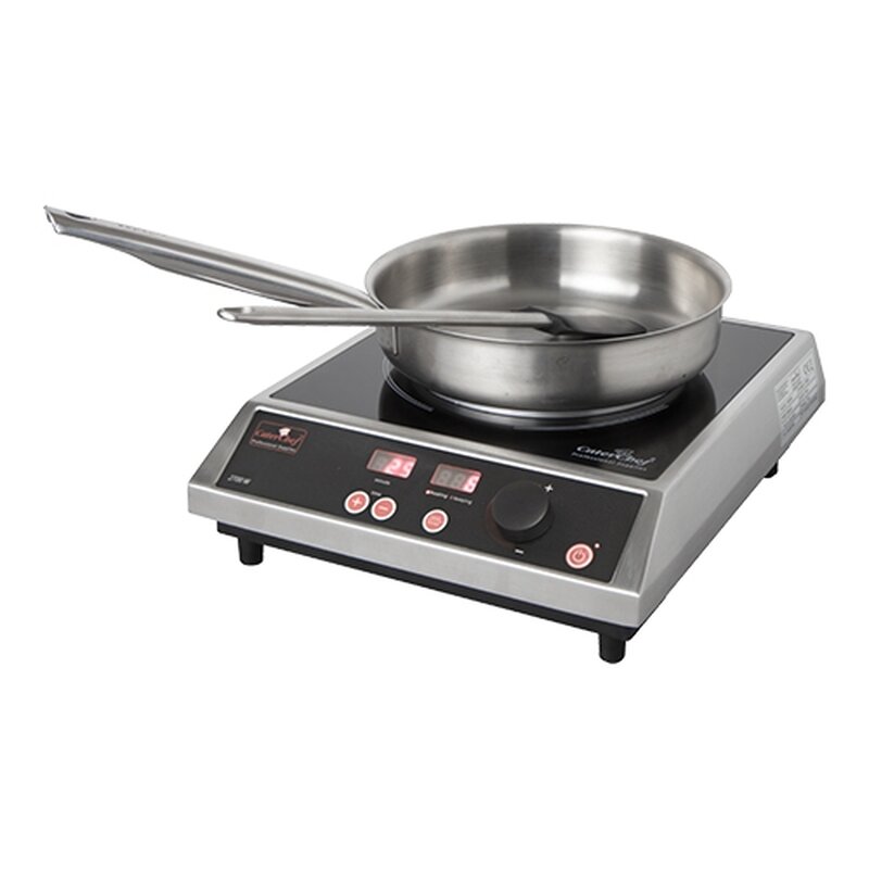 inductiekookplaat voorzien van digitale timer 0-120 minuten, temperatuurinstelling tussen 60-240°C en 15 vermogensstanden (500-2700 W) met oververhittingsbeveiliging, verhittings-oppervlakte Ø26 cm