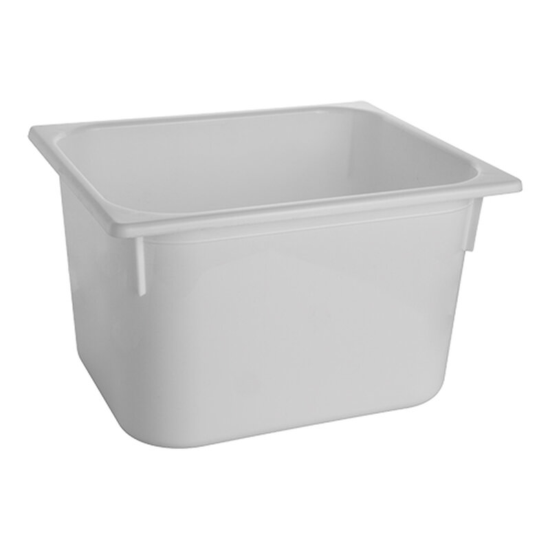 van hoogwaardig kunststof, deze gastronorm bak verdraagt temperaturen van -30°C tot +100°C, is absoluut reuk- en smaakvrij en bestand tegen normale huishoudzuren, oliën en vetten