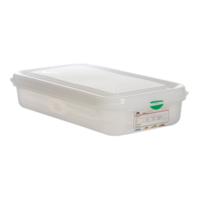 luchtdicht afsluitbaar door uniek dubbel afsluitsysteem en absoluut smaak- en reukvrij, geschikt voor vriezer -40°C en magnetron +100°C (zonder deksel), wordt compleet geleverd met product coderingsset volgens de HACCP normen