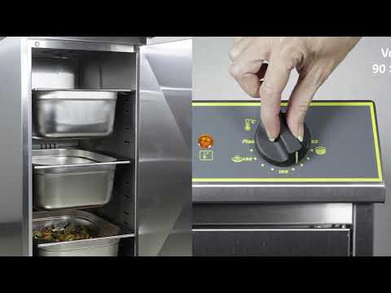 deze voedselwarmkast wordt verwarmd doormiddel van een ventilator waardoor er sprake is van gelijkmatige spreiding van de hetelucht, met behulp van de meegeleverde waterbak kan tevens de vochtigheid gereguleerd worden. De warmhoudkast is dubbelwandig en geheel geïsoleerd en geschikt voor 3x 2/3 GN bakken op het rooster. De warmhoudkast is compleet uitgerust met thermostaat, controlelampje en 4 zwenkwielen waarvan 2 geremd. Tevens is deze voedselwarmhoudkast ook geschikt voor het opwarmen voor borden