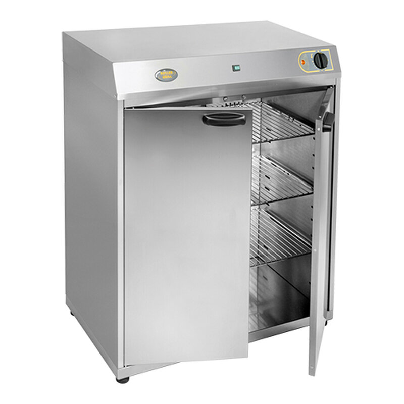 deze voedselwarmhoudkast wordt verwarmd doormiddel van een ventilator waardoor er sprake is van gelijkmatige spreiding van de hetelucht,met behulp van de meegeleverde waterbak kan tevens de vochtigheid gereguleerd worden. De warmhoudkast is dubbelwandig en geheel geïsoleerd en geschikt voor 3x 1/1GN bakken op het rooster. De warmhoudkast is compleet uitgerust met thermostaat, controlelampje en 4 zwenkwielen waarvan 2 geremd. Tevens is deze voedselwarmhoudkast ook geschikt voor het opwarmen voor borden