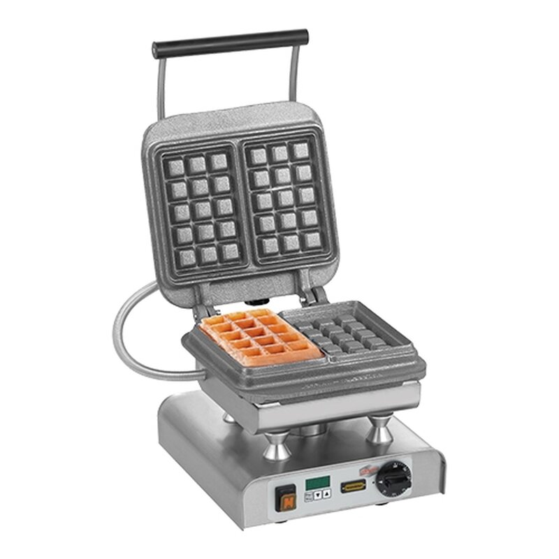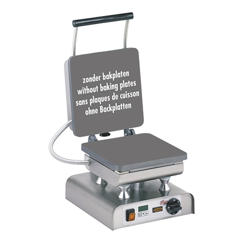 type single, d.m.v. eenvoudig te verwisselen sets gietijzeren wisselplaten (zijn niet inclusief, platen los leverbaar) voor o.a. wafels, crêpes ontstaat een uniek baksysteem, voorzien van elektronische tijdklok met geluidssignaal