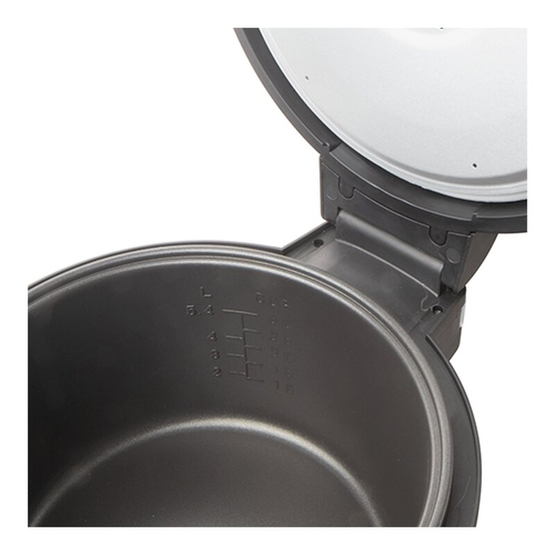 de rijstkoker is inwendig voorzien van een anti-aanbaklaag en kookt de rijst en houdt deze daarna automatisch op temperatuur