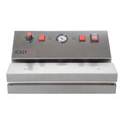 werkt zonder drukkamer waardoor meer mogelijkheden ontstaan betreffende de grootte van het te vacumeren product. Geeft d.m.v. een drukmeter aan wanneer het vacumeren klaar is, met een drukknop wordt de sealbalk in werking gezet waarna de machine automatisch stopt als de plastic zak geheel dicht is. Voorzien van een instelbare vacuüm- en sealtijd, hoofdschakelaar en drukmeter