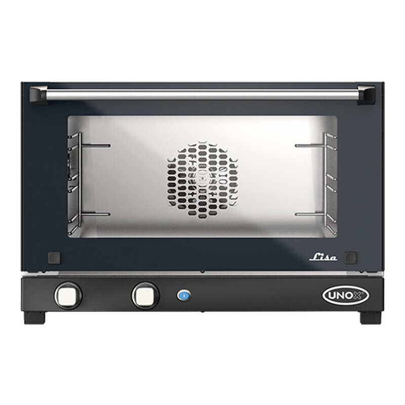 de UNOX Lisa Manual is compact maar groots in prestaties en optimaal geïsoleerd, voorzien van draaiknoppen op het controlepaneel met tijdklok en thermostaat. Wordt compleet geleverd met 3 bakplaten (46 x 33 cm)