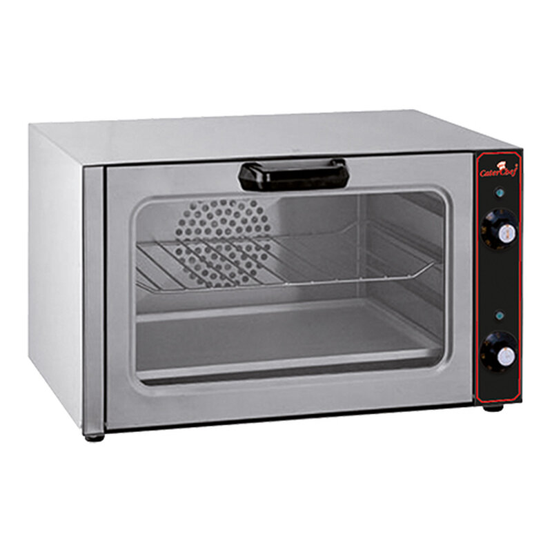 de CaterChef heteluchtoven Fornetto betreft een compacte uitvoering die voorzien is van tijdschakelaar, thermostaat en controlelampje. Wordt compleet geleverd met 1 rooster en 1 bakplaat 40 x 29 cm