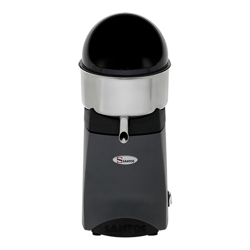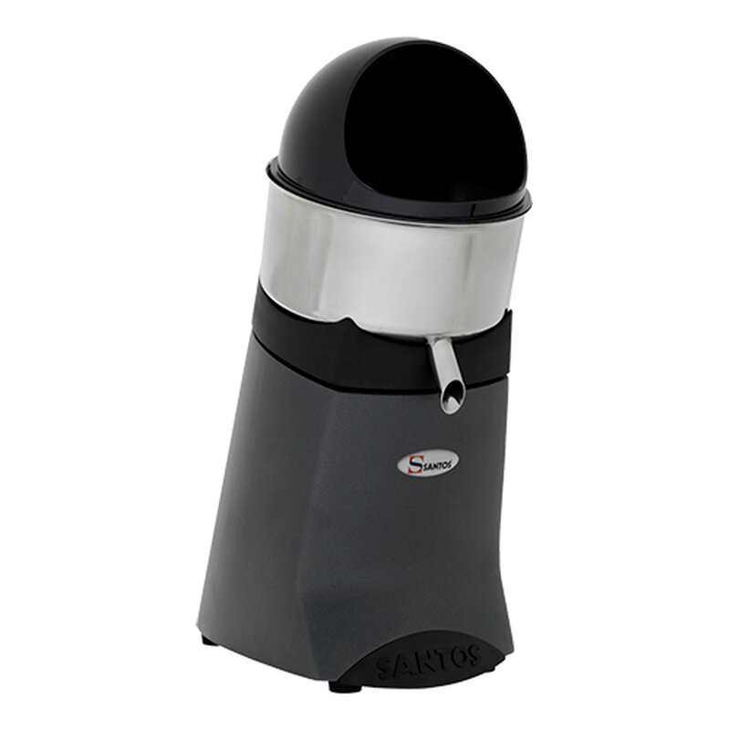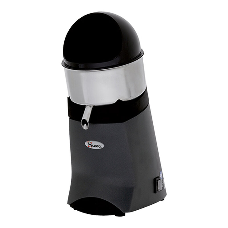 de Santos Jumbo is een citruspers pers met hoge capaciteit voor continu-productie, start automatisch wanneer een citrusvrucht op de perskegel wordt geduwd, alle stroom dragende delen zijn optimaal beschermd tegen aflopend sap, alle met sap in aanraking komende materialen zijn zuur- en smaak bestendig, de Santos Jumbo is eenvoudig te demonteren en daardoor gemakkelijk te reinigen