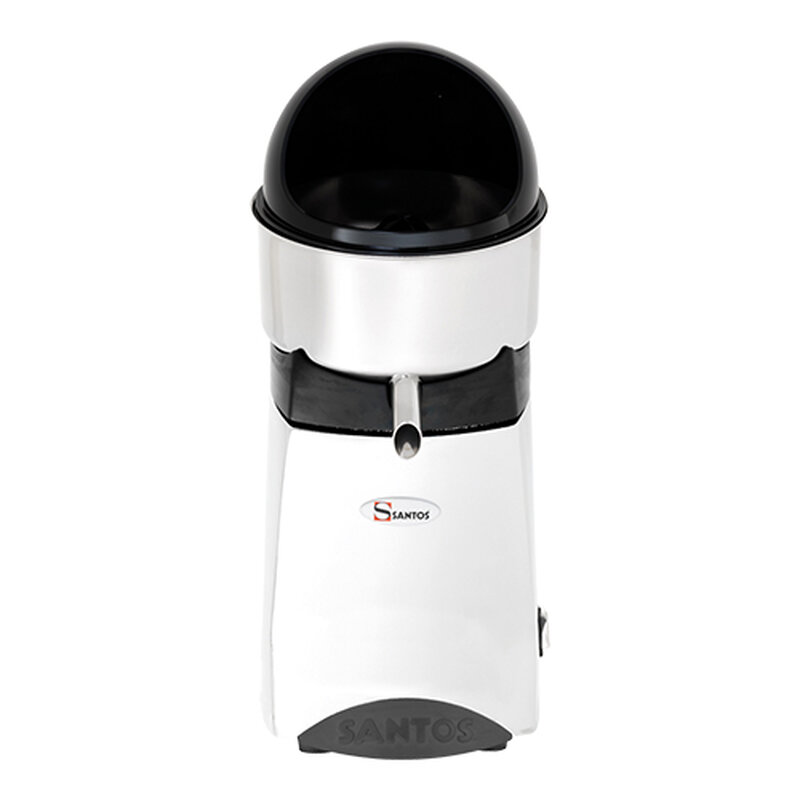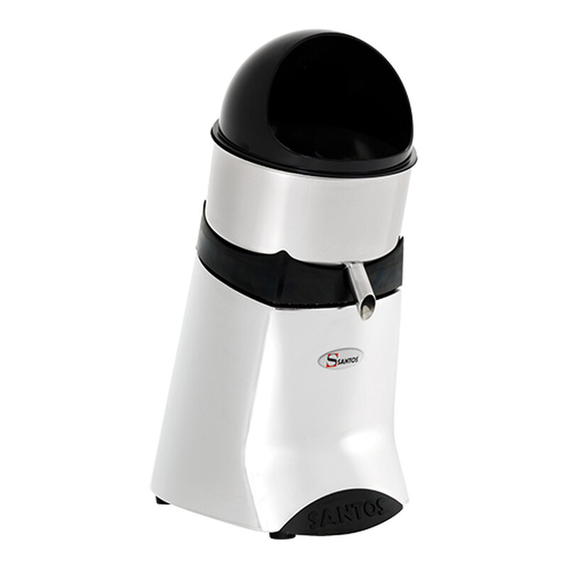 de Santos Jumbo is een citruspers pers met hoge capaciteit voor continu-productie, start automatisch wanneer een citrusvucht op de perskegel wordt geduwd, alle stroom dragende delen zijn optimaal beschermd tegen aflopend sap, alle met sap in aanraking komende materialen zijn zuur- en smaak bestendig, de Santos Jumbo is eenvoudig te demonteren en daardoor gemakkelijk te reinigen