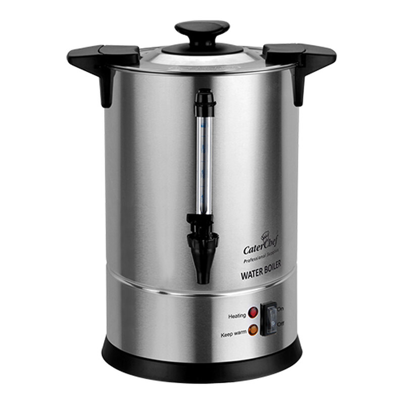 deze waterkoker is ideaal voor het bereiden van grotere hoeveelheden in één keer, werkt geheel automatisch en houdt het water op serveertemperatuur. Uitgerust met non-drip kraan, controlelampje, aan/uit schakelaar en controlevenster voor het waterniveau
