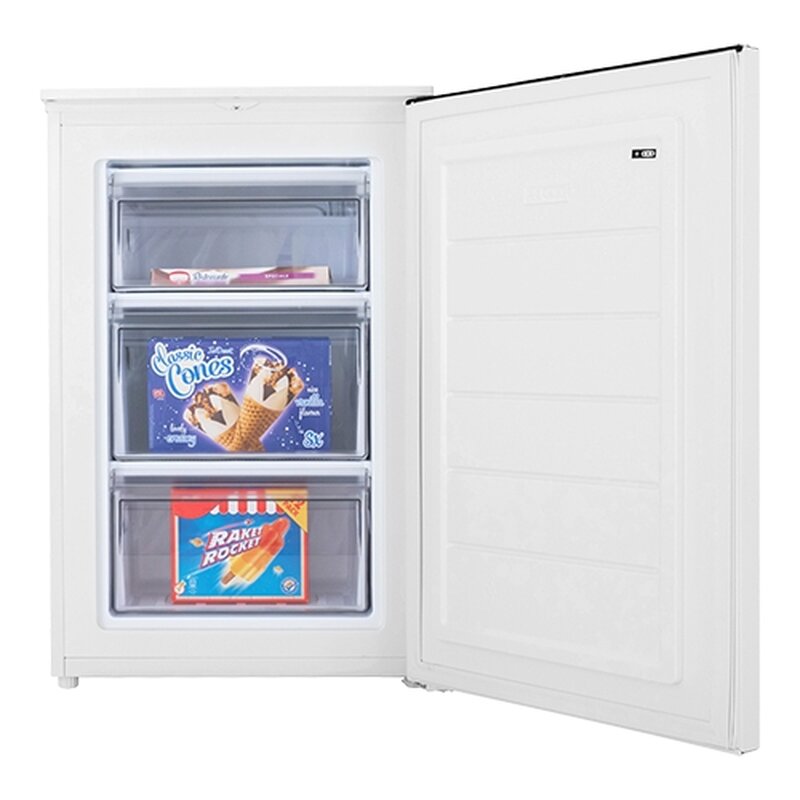 deze compacte en efficiënte tafelmodel vriezer is ideaal voor iedere locatie met beperkte ruimte. De vriezer beschikt over drie praktische lades en heeft een invriescapaciteit van 4,4 kg per 24 uur. Dankzij de eenvoudige temperatuurregeling via een draaiknop aan de voorzijde, is de bediening snel en gebruiksvriendelijk. De buitenzijde is vervaardigd uit wit gemoffeld plaatstaal, wat zorgt voor een strakke en onderhoudsvriendelijke afwerking. De binnenzijde is uitgevoerd in hygiënisch kunststof. De deur is zowel links- als rechtsdraaiend te monteren