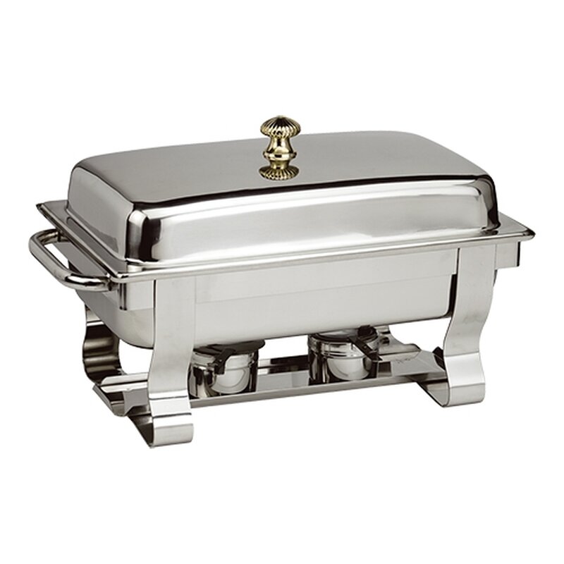 met een fraai uitgevoerde deksel voorzien van zware messing knop, compleet met voedselpan en twee zware brandpastahouders