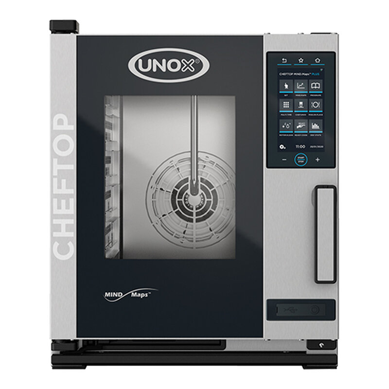 de UNOX Mind.Maps PLUS onderscheidt zich door het fraaie design en het bedieningsgemak van het 9,5 inch capacitieve bedieningsdisplay, hiermee kunnen gerechten handmatig bereid worden of gebruik de revolutionaire Mind.Maps technologie, maar het geeft ook toegang tot een lijst met bereidingscycli die eerder zijn opgeslagen of er kunnen nieuwe recepten gemaakt en opgeslagen worden. De oven beschikt o.a. over Adaptive.Cooking voor altijd een perfect resultaat, Multi.Time dat u in staat stelt om verschillende producten tegelijk te bakken met behulp van 10 timers en Mise.en.Place waardoor alle gerechten op dezelfde tijd klaar zijn, met CHEFUNOX heeft u beschikking over een voorgeprogrammeerde bibliotheek met programma's voor een maximaal kookresultaat. De Dry.Maxi technologie draagt zorg voor afvoer van vocht uit de oven, Steam.Maxi voor perfect stomen, Air.Maxi voor een perfecte heteluchtcirculatie en het automatische reinigingssysteem Rotor.Klean draagt zorg voor een schone ovenruimte. Met behulp van de geïntegreerde WIFI-module bestaat de mogelijkheid om o.a. uw receptenboek op afstand te beheren, te synchroniseren en het verbruik van uw oven te monitoren.