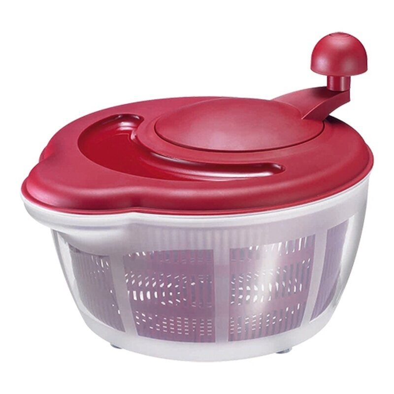 met deze solide slacentrifuge was en droog je salade eenvoudig. De ergonomische draaiknop en zeefinzet zorgen voor snel drogen, terwijl het water via de praktische schenktuit wordt afgegoten. Dankzij de vier rubberen voetjes staat de centrifuge stabiel voor extra gebruiksgemak