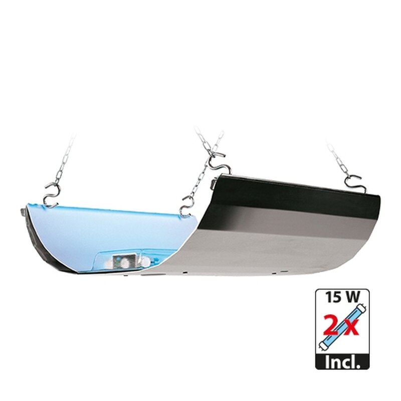 plafondmodel, twee onbreekbare neonlampen lokken de insecten die vervolgens onontkoombaar worden vastgehouden door een kleefplaat, vervaardigd in overeenstemming met de vereiste HACCP normen